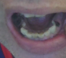 Los dientes no hacen falta quitarlos, se van rompiendo y quemando ellos solos, solo quizás calmantes para días de dolor por infección. Como se ve en esta imagen mía. Tengo los dientes así, pero nunca sufrí dolor. Otra foto mía, en el lado izquierdo, es que ya está la encía ya está preparada para que salgan dientes.