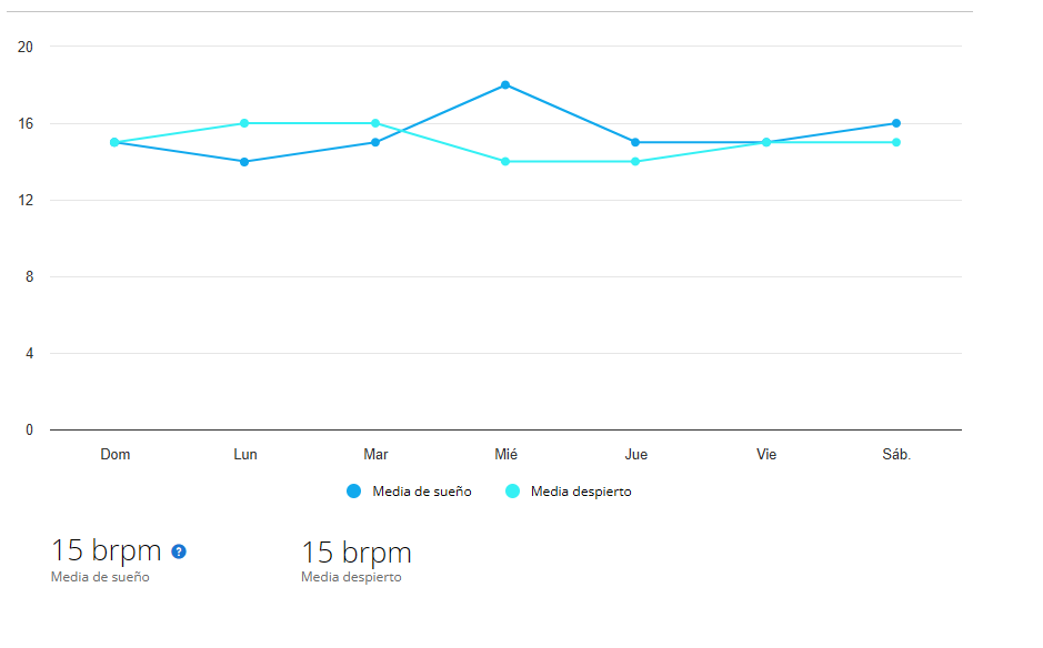En este dato de frecuencia respiratoria mío, tomado con un Garmin fénix 7, puede llegar o aproximar a la horas que necesitamos dormir o no dependiendo el nivel de intensidad del ejercicio o actividad durante el día. El relog Garmin fénix 7 no mide las siestas. Si la media de respiraciones por minuto baja mucho durante el día y durante la noche puede cortar el flujo de oxígeno que producen los fotones.
