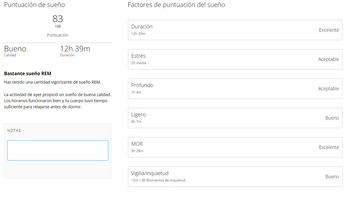 Estas son las estadísticas mías de un día de sueño.